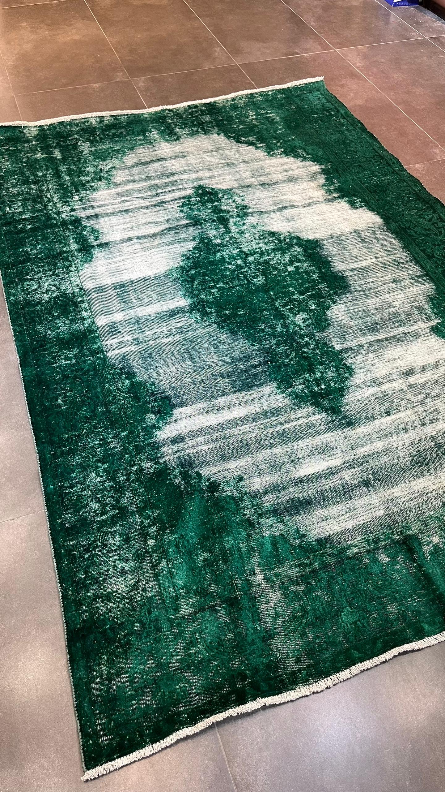 فرش دستبافت وینتیج رنگ سبز