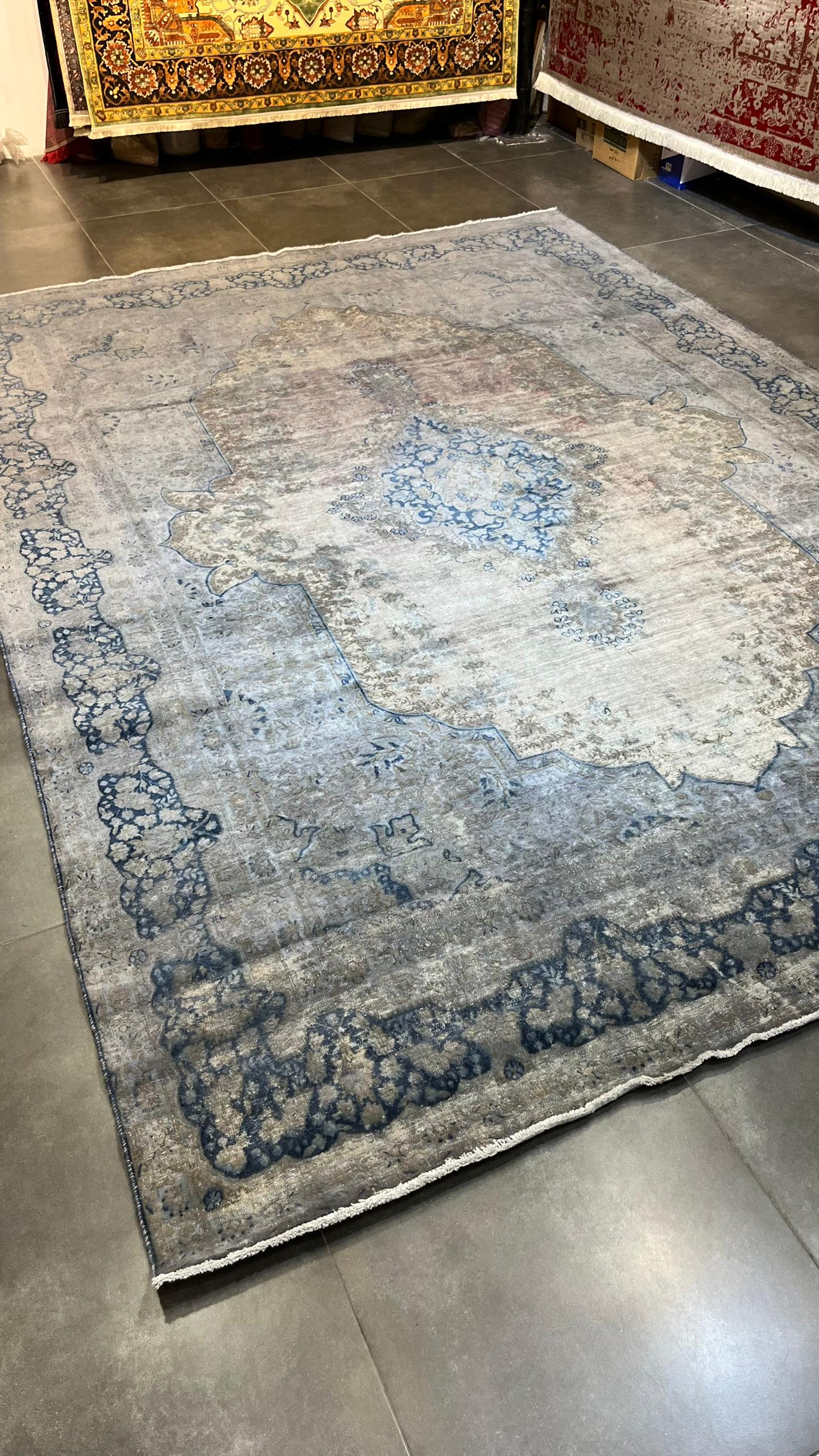 فرش دستبافت وینتیج رنگ طوسی